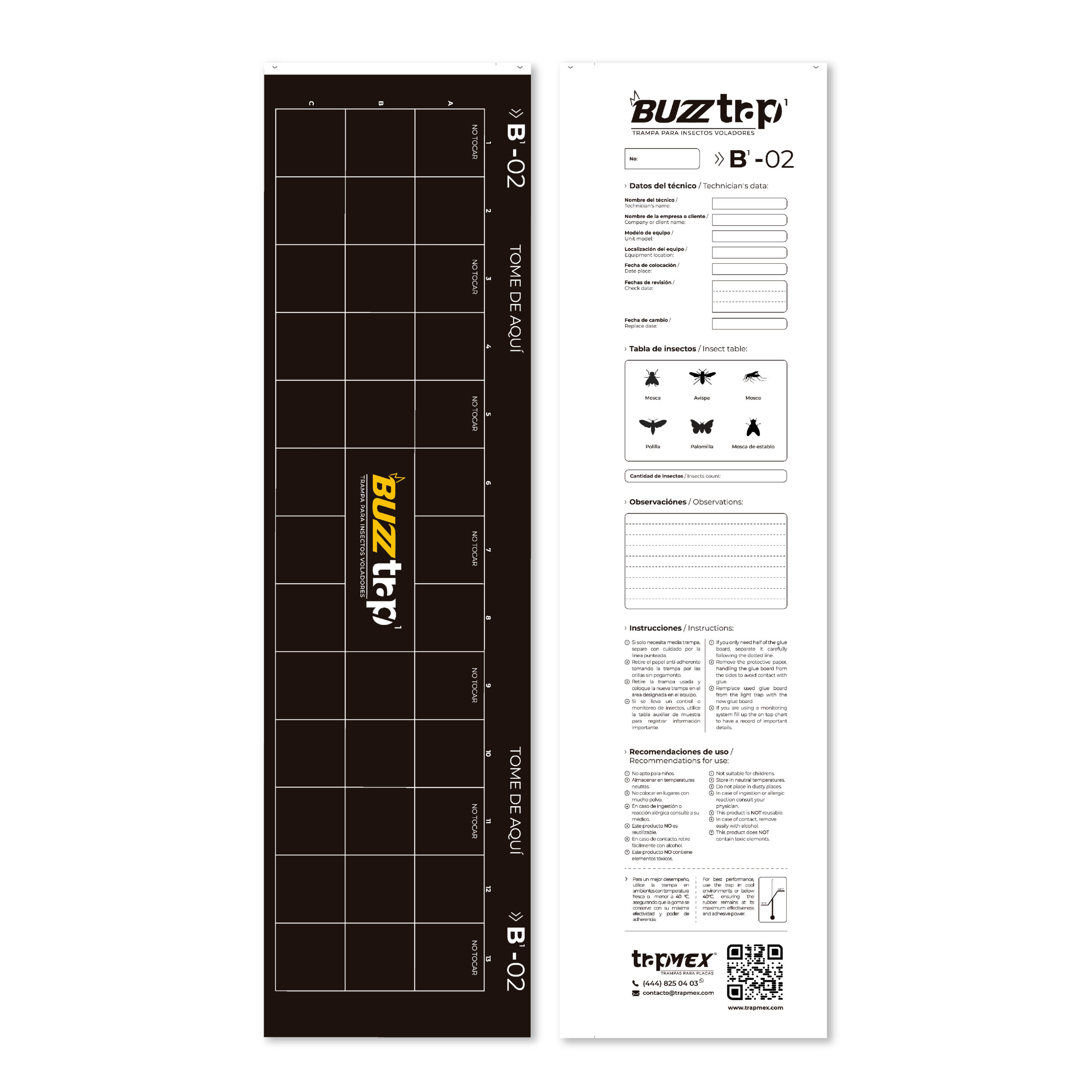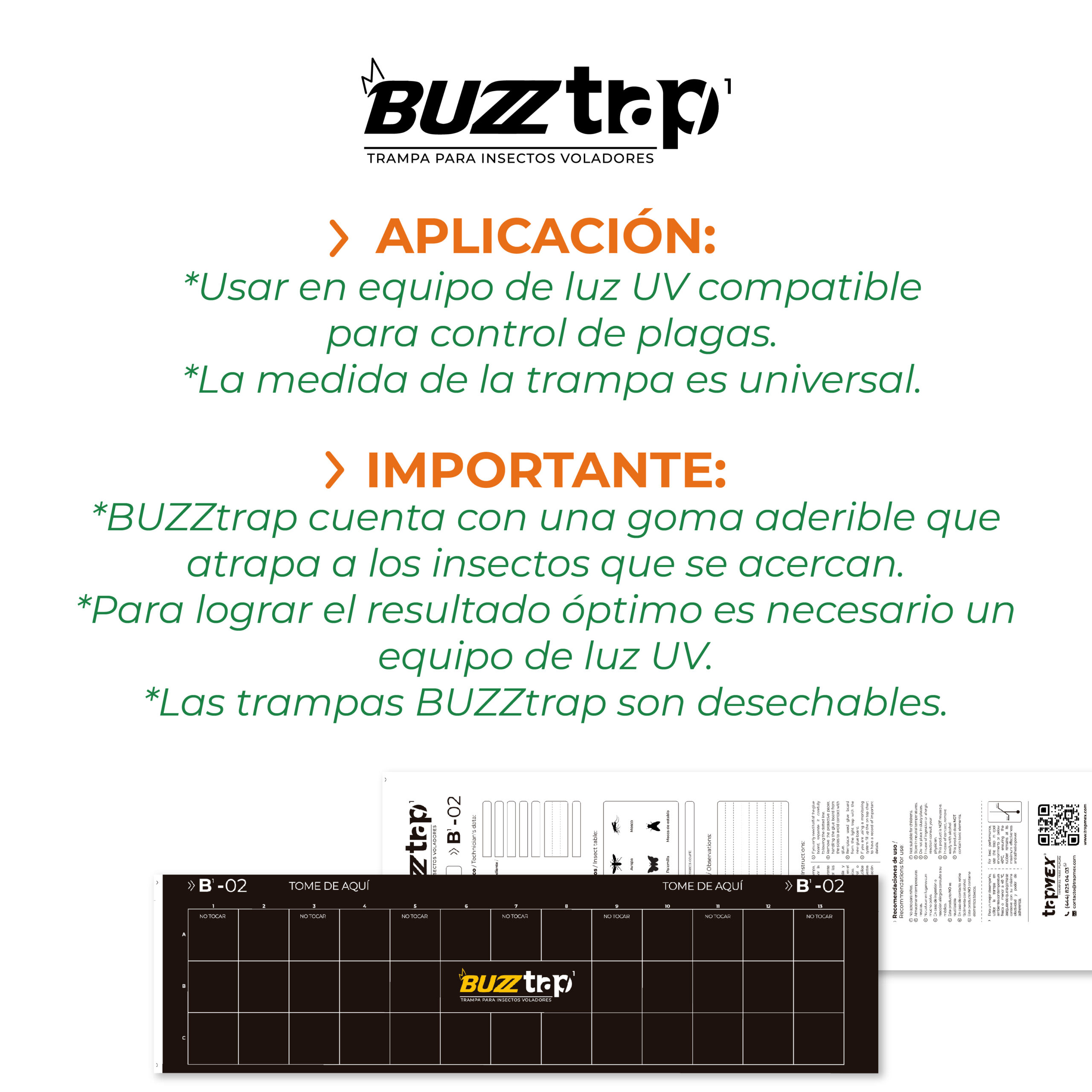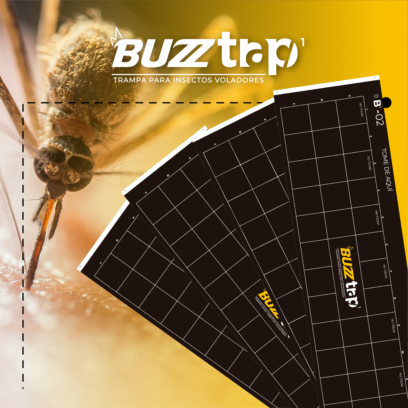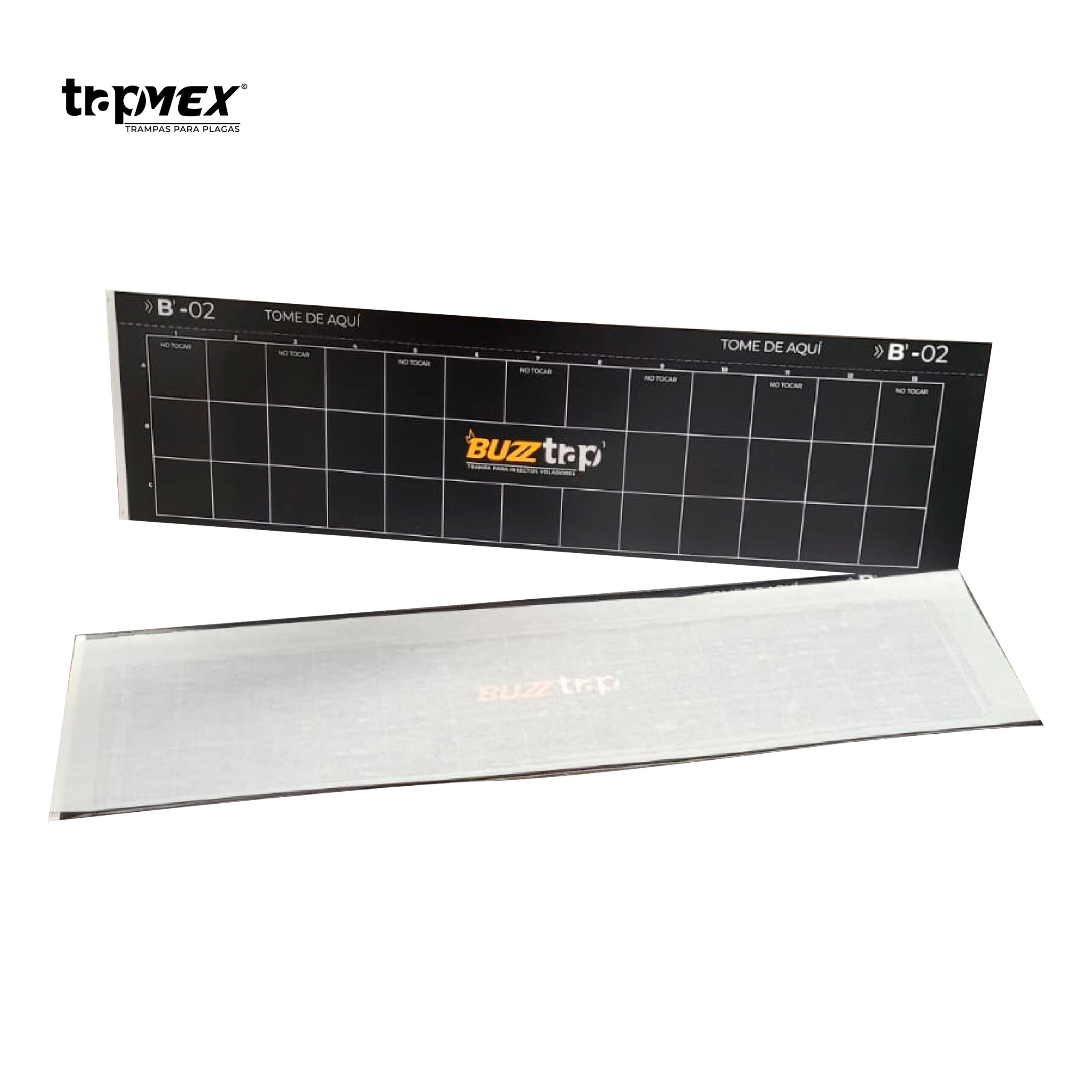 BUZZtrap 1 es una trampa de goma especialmente diseñada capturar insectos voladores. En esta presentación encontrarás dos piezas en uno.